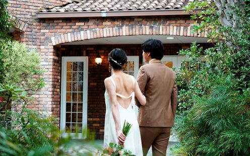 レンガ造りの外観とウッドを基調とした天井も高く開放的でクラシカルなインテリアが彩る落ち着いた雰囲気が魅力の邸宅は、本物志向の花嫁にピッタリ。