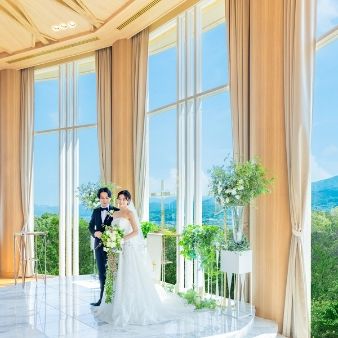 山形市内とは思えない絶景ロケーションが広がるチャペルや四季を感じるガーデンでの撮影など、リゾート感あるフォトウエディングができるのが当館の魅力。ドレスサロンも同じ敷地内にあるから衣裳合わせもスムーズ♪