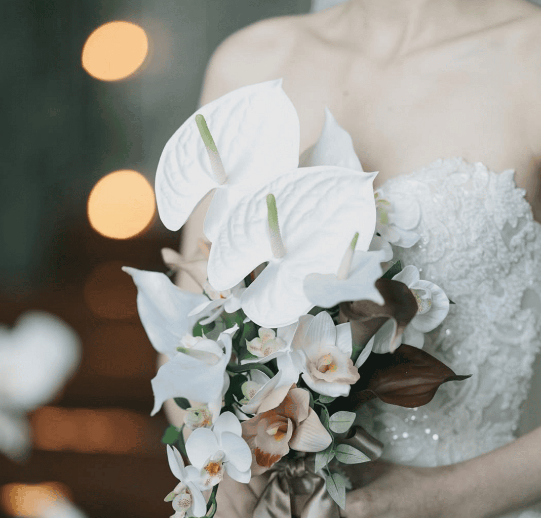 ドレスから「すらり」と伸びる二の腕は、美しい花嫁に欠かせない。バンテージやマッサージで、しっかり引き締めよう。