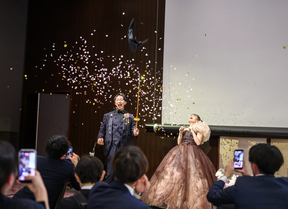 華やかな演出になるので披露宴にもぴったりです。どちらの色が出ても似合う色のドレスがgood◎