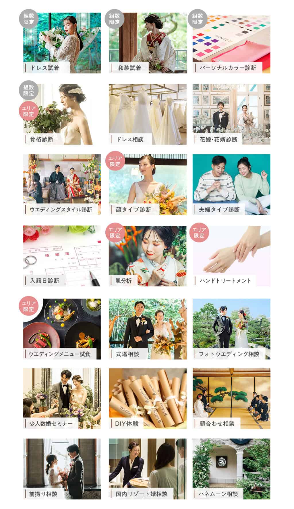 花嫁ドレスフェスタでは、20のコンテンツがすべて無料で体験可能です。