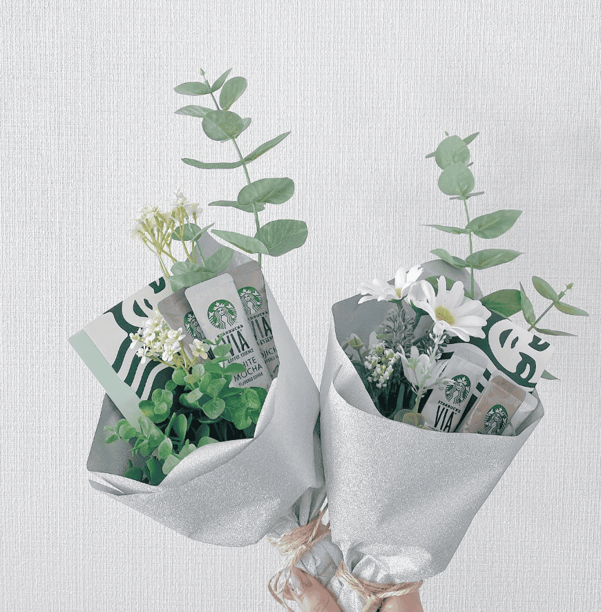 スタバカードやコーヒーなどをまとめたブーケ♡