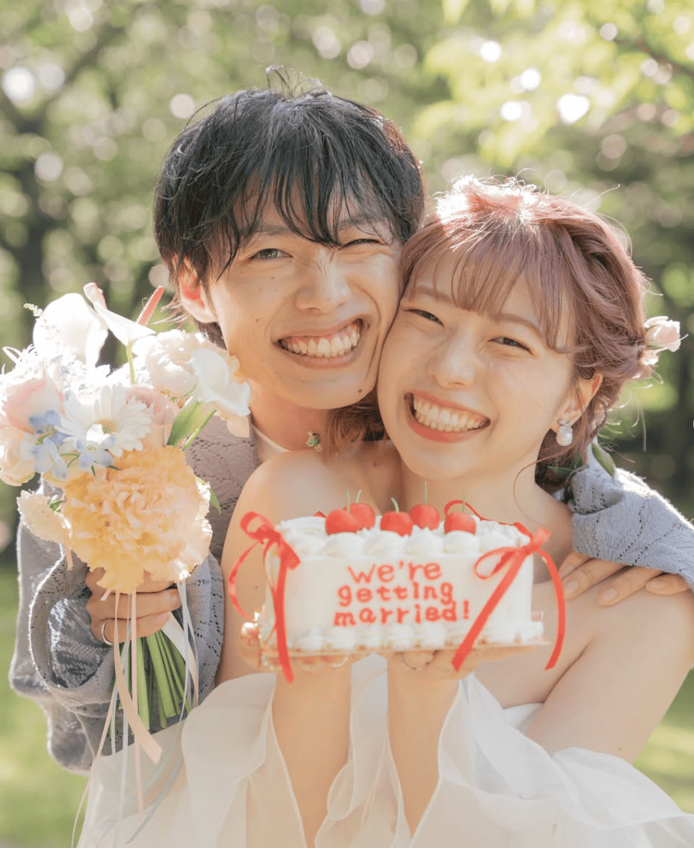 プレートやケーキを使った写真は、お祝いの雰囲気と華やかさがプラスされ、SNSでの結婚報告フォトにもピッタリです!