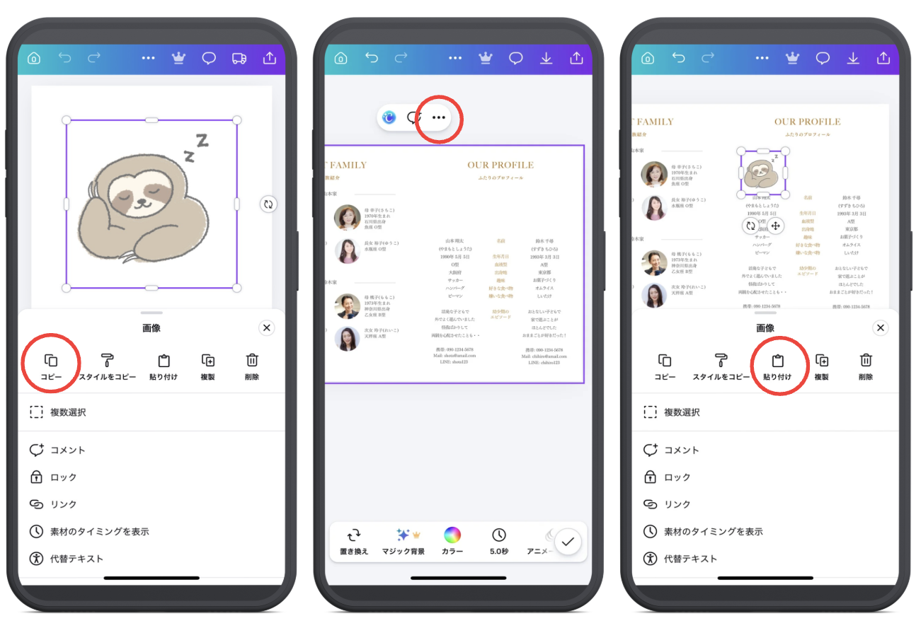 ② しおりのデザインをcanvaで開いて「・・・」をタップ