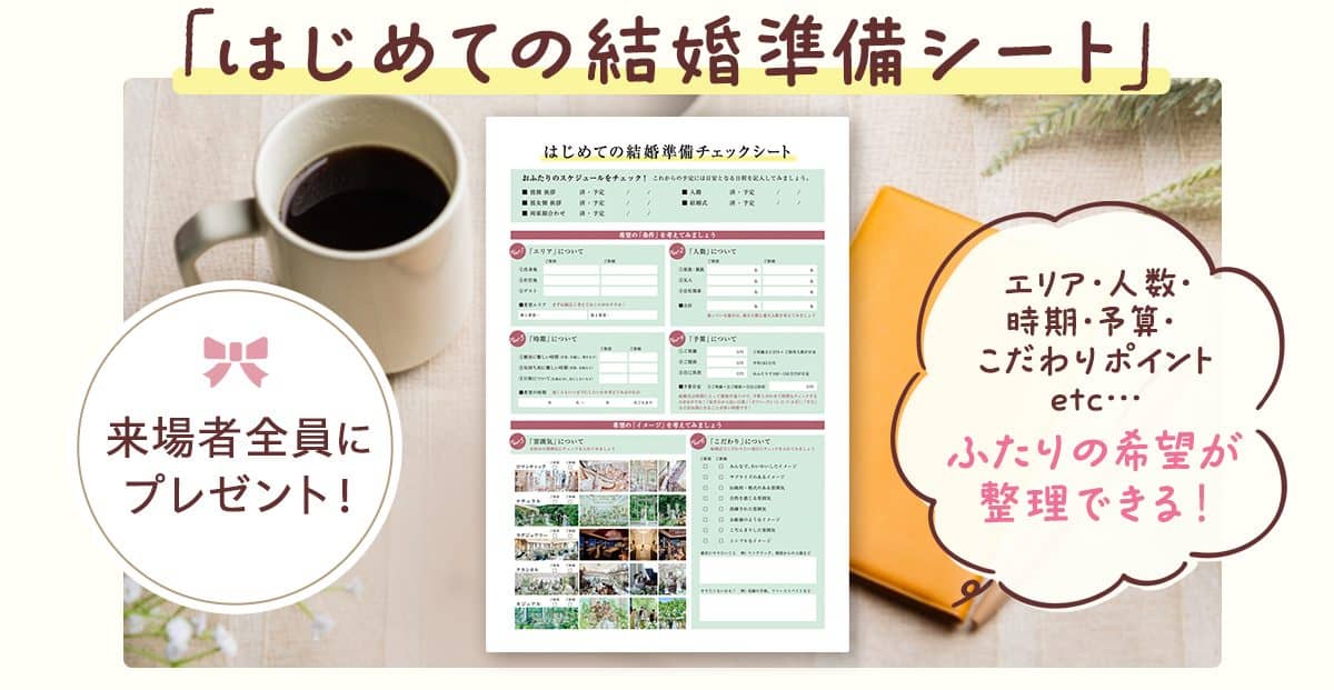 さらに!イベントでは「結婚式、何から始めたらいい…?」を簡単に整理できる結婚準備シートがもらえるので、ふたりのこだわりポイントなどを確認することもできます♡