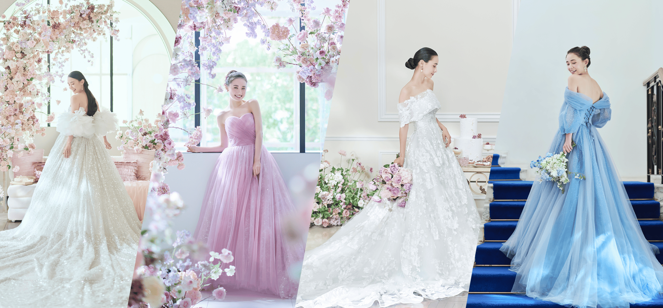 【花嫁はじめてフェス】では、花嫁に人気の最新ドレスやプリンセスライン・Aライン・マーメイドラインなど、いろいろなドレスやタキシードを多数展示!