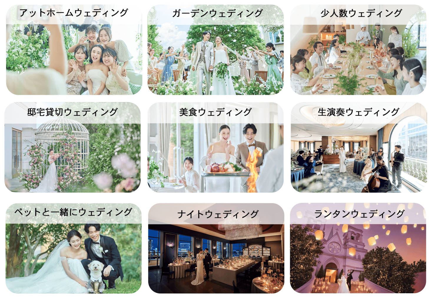理想の雰囲気にマッチした式場・結婚式スタイルを見つけてみてくださいね。