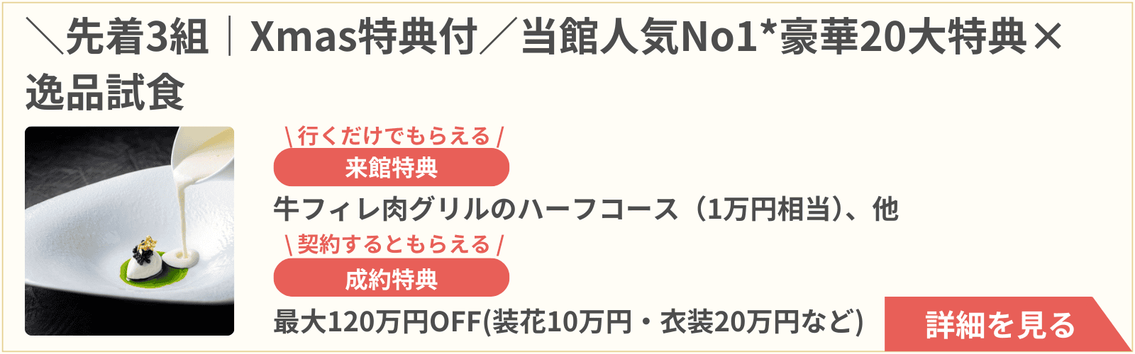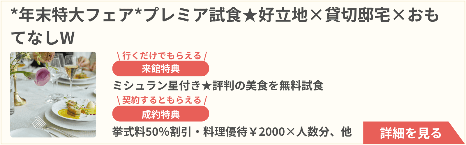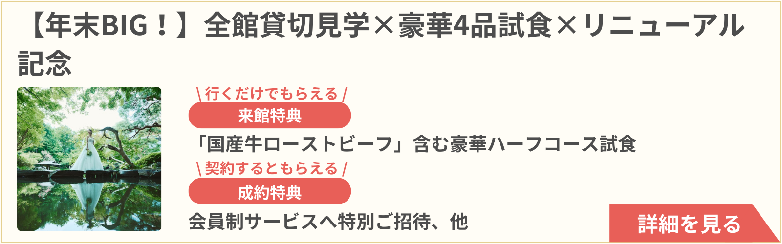年末は年末限定特典を用意している会場も多く、<お得に><希望の結婚式>が叶いやすい穴場の時期なんです。
