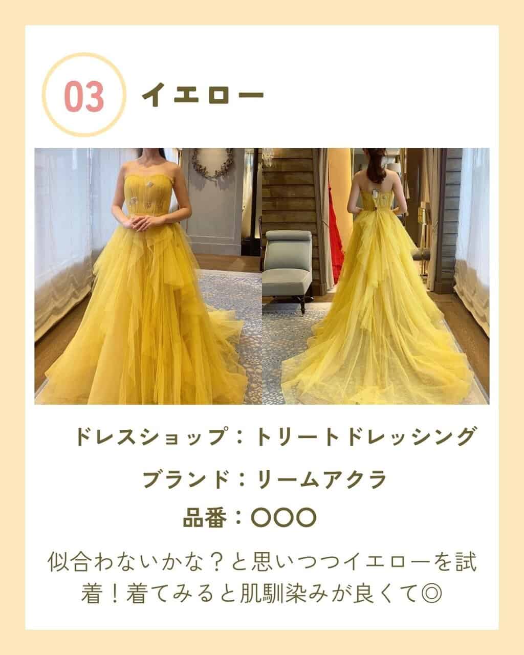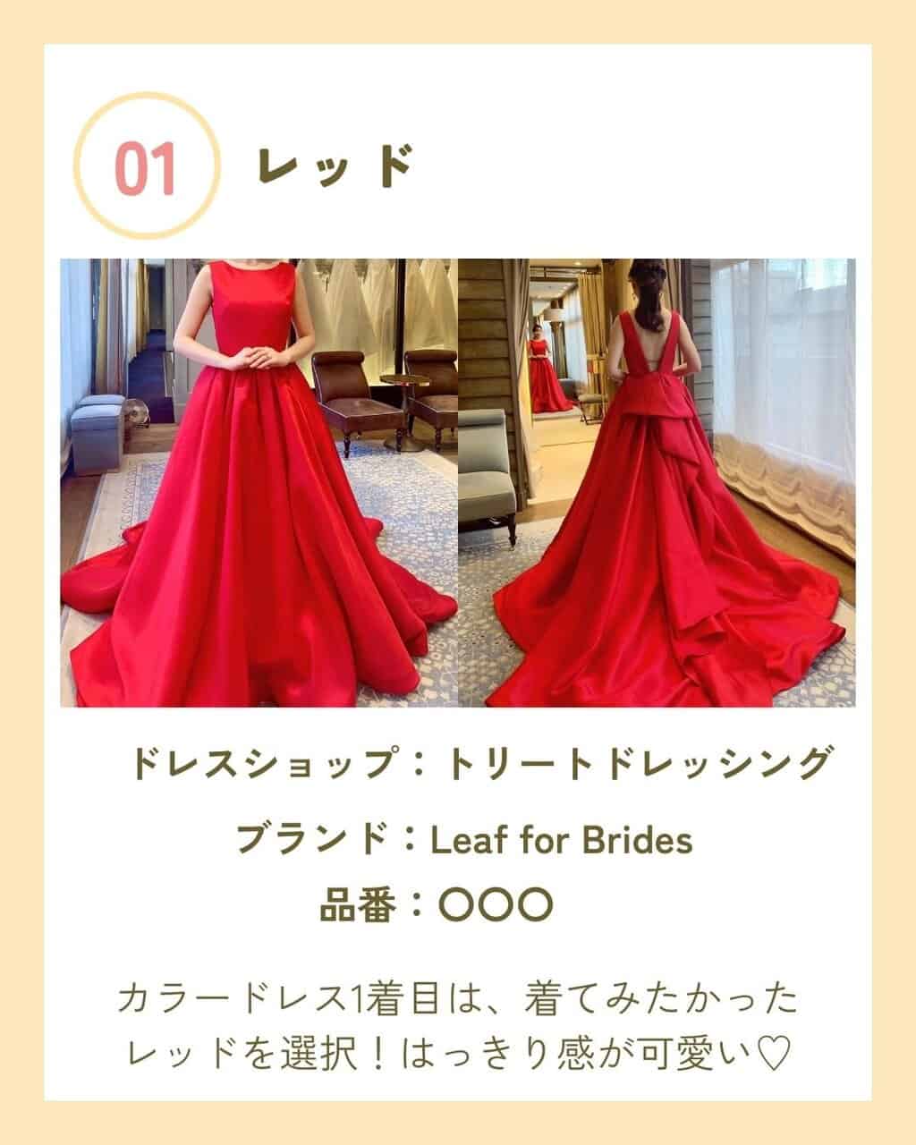 後輩花嫁さんの参考になるように「ショップ名・ブランド・品番」と一緒に教えてください♩