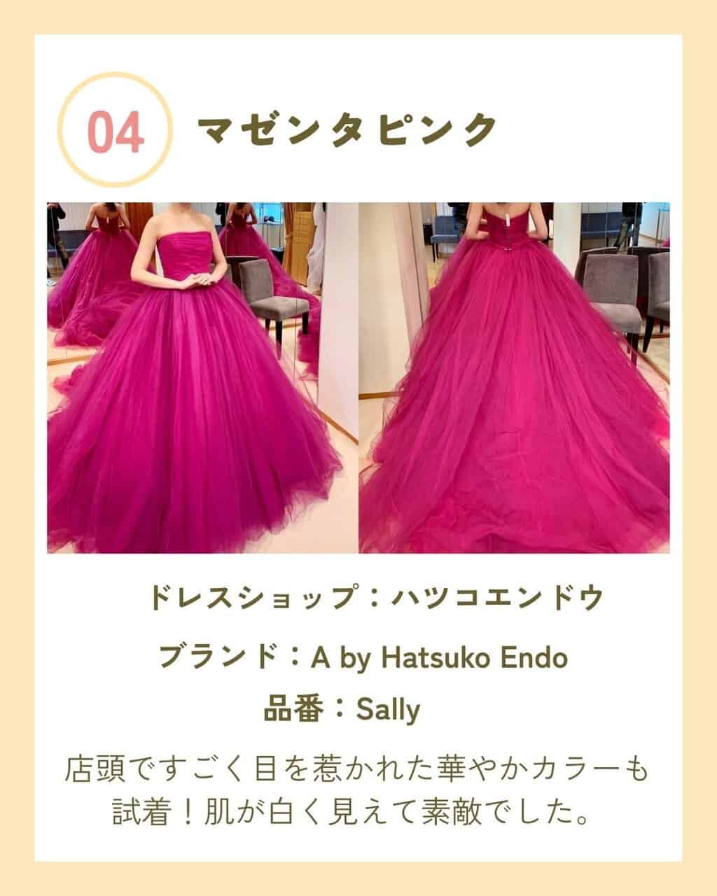 着てみたかったカラーや着てみたらしっくりきて候補になったカラー、憧れのドレスブランドで試着しました!など、