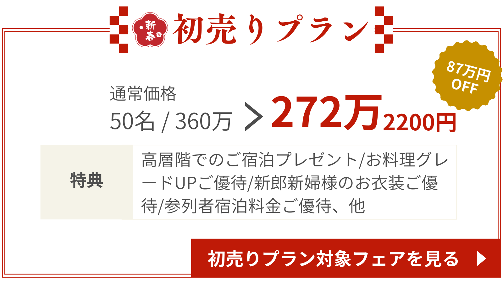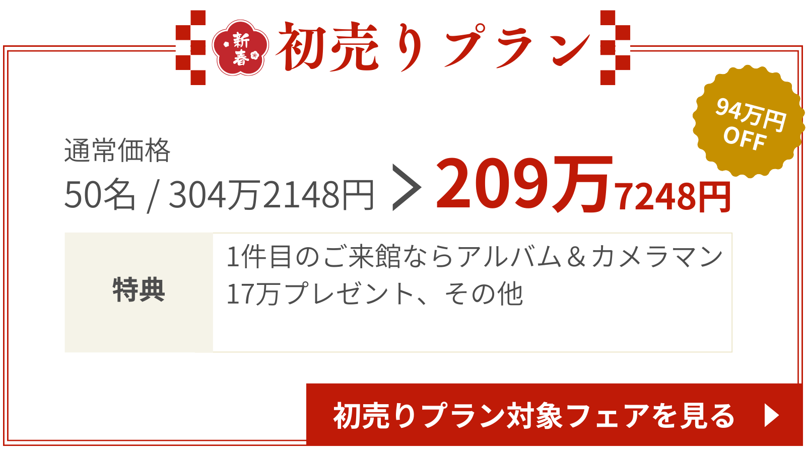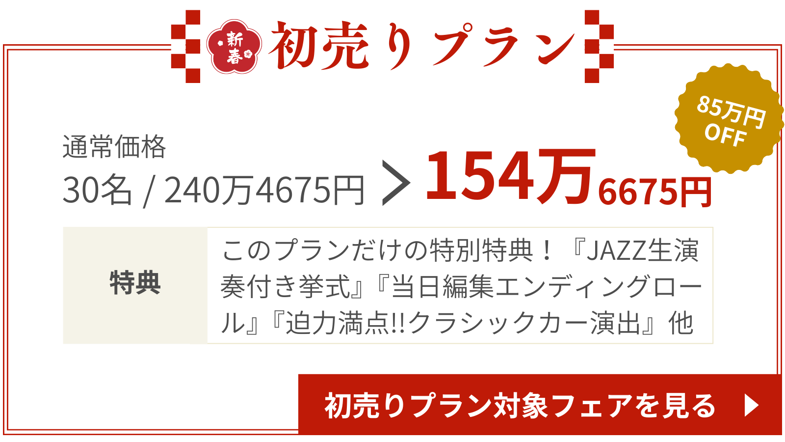 新春初売りプラン2026年6月までの結婚式がお得にできるプランです!