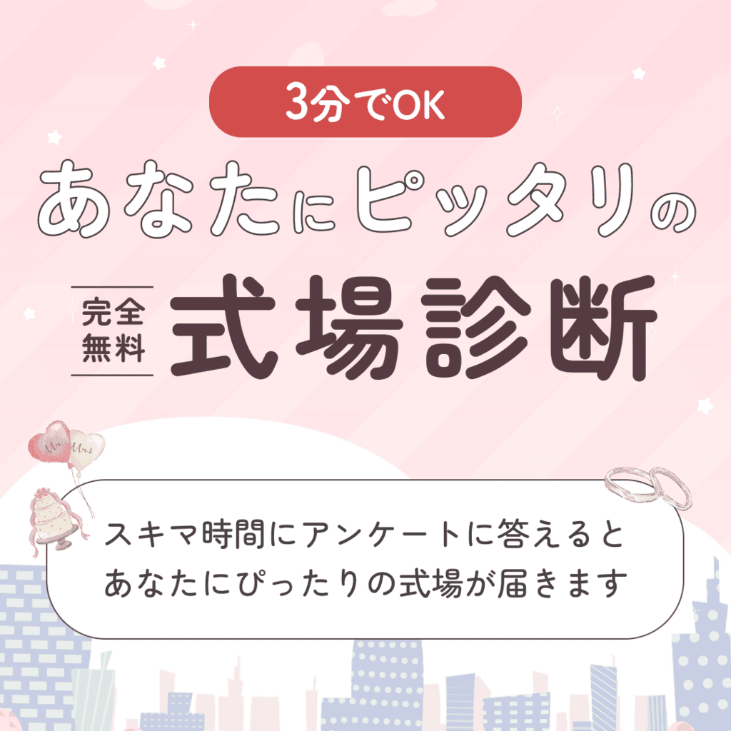 カンタン3分の式場診断に答えるだけで、式場探しのプロがあなたの好みに合った式場をLINEでご提案。