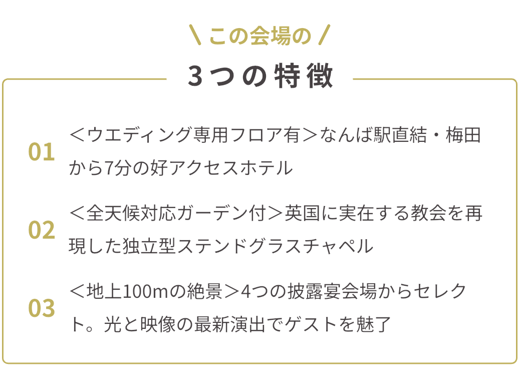 <ウエディング専用フロア有>なんば駅直結・梅田から7分の好アクセスホテル
