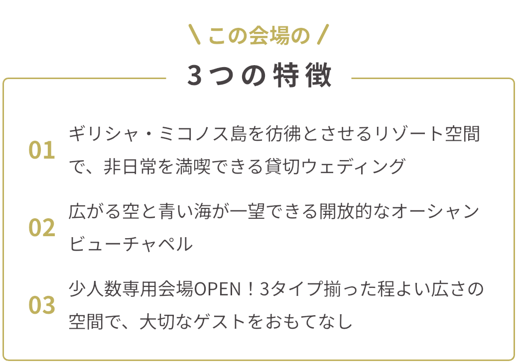 ギリシャ・ミコノス島を彷彿とさせるリゾート空間で、非日常を満喫できる貸切ウェディング