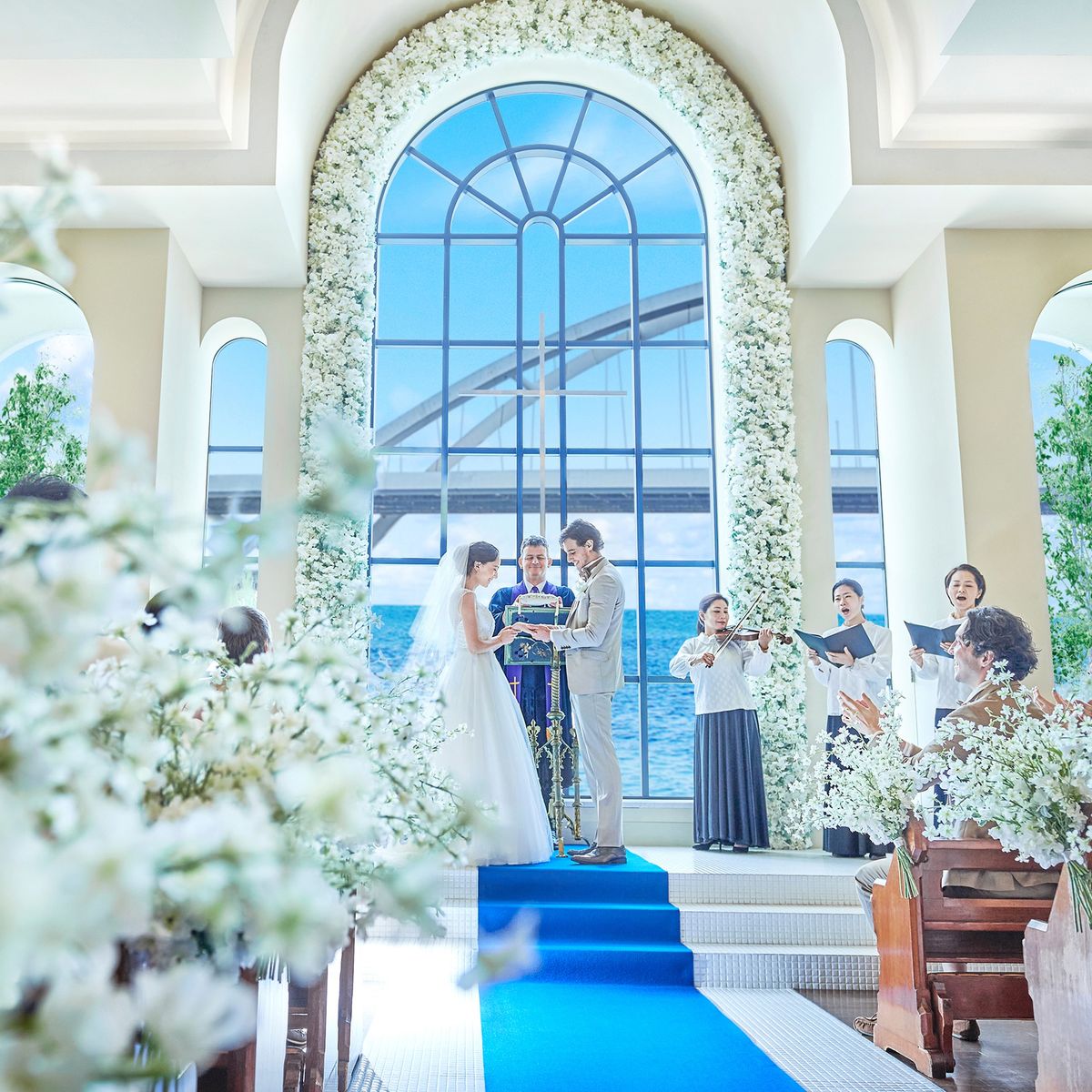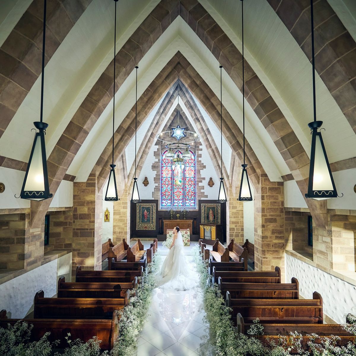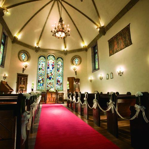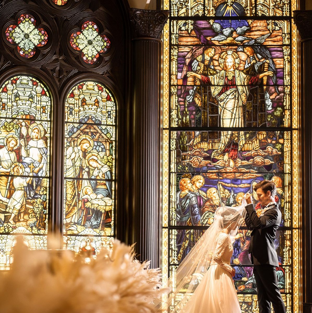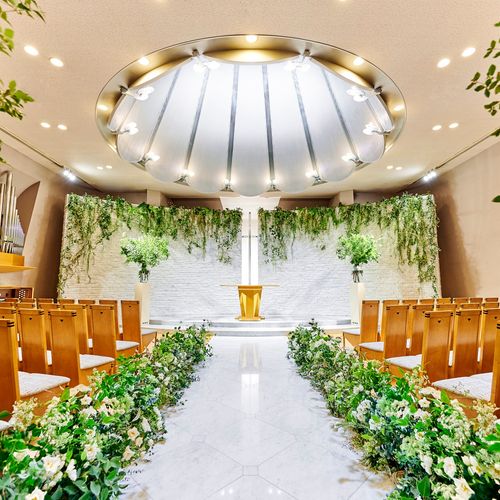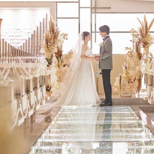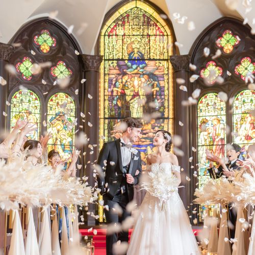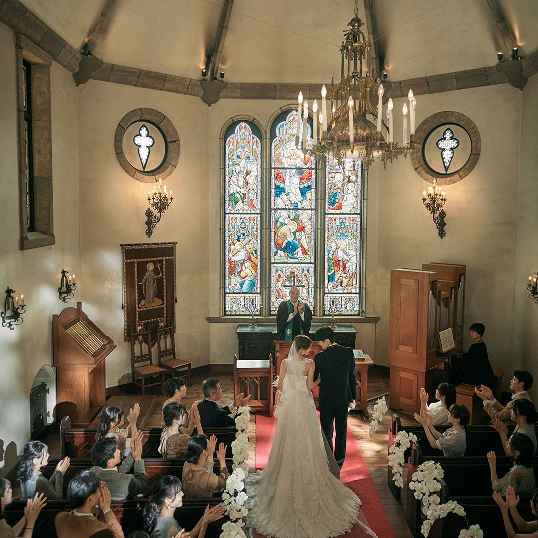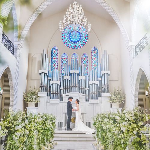 360度ステンドグラスに囲まれた誓いの場所でパイプオルガンの音色に包まれる圧巻の挙式