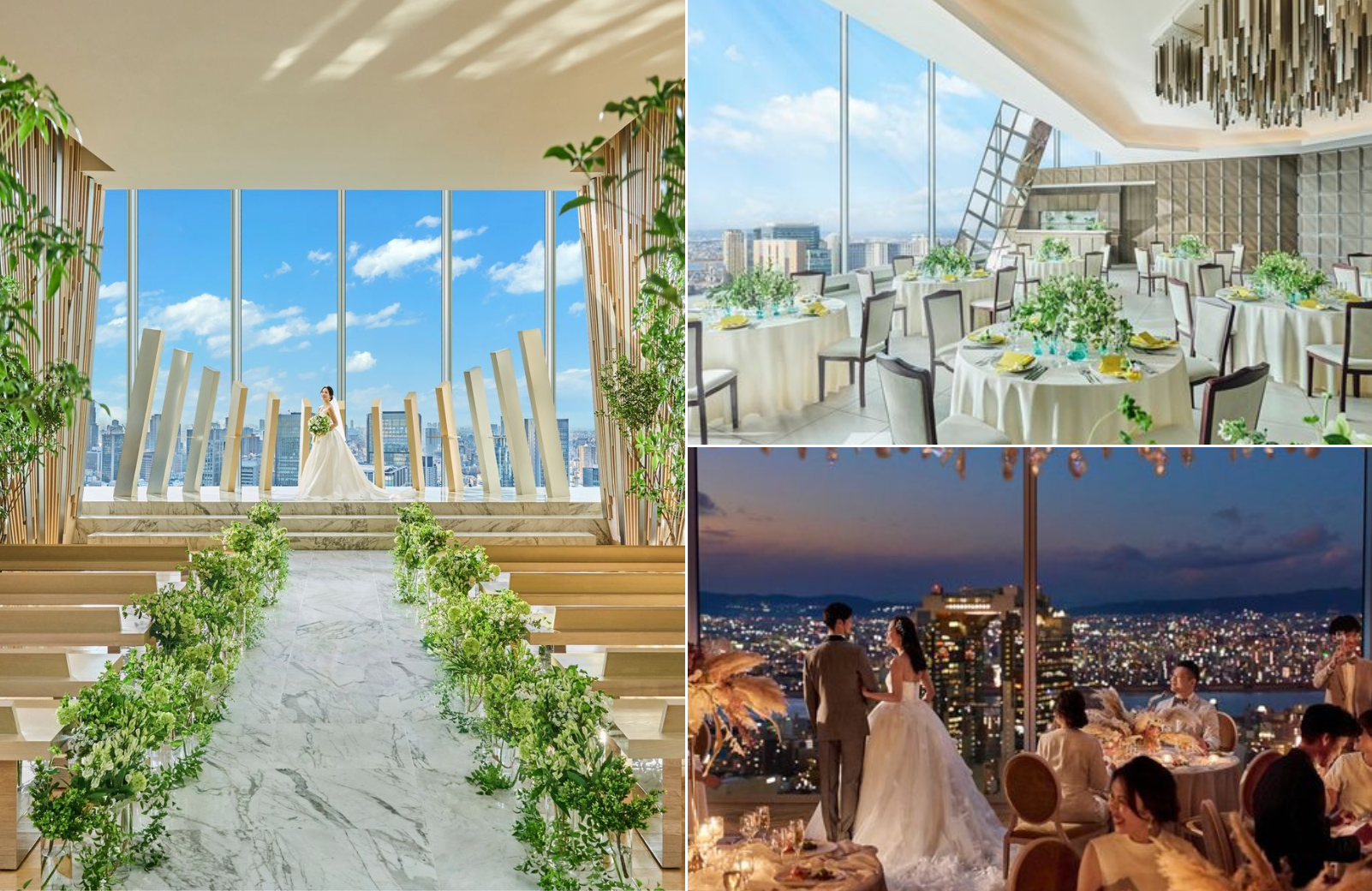地上160m【天空のウエディング】と呼ばれる光溢れる高層階の絶景チャペルが印象的