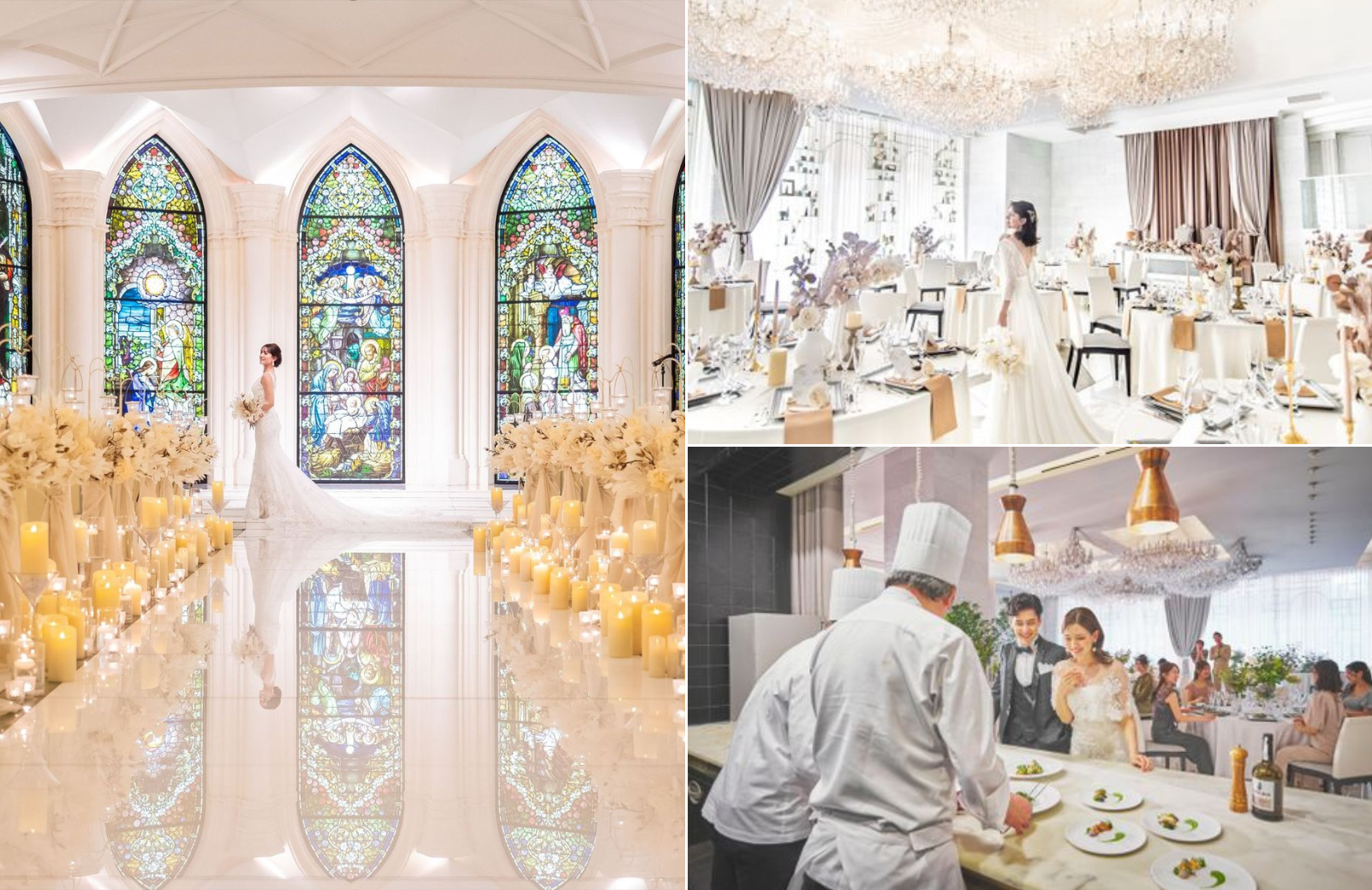 360度ステンドグラスが彩るチャペルは圧巻!大理石のバージンロードは22m