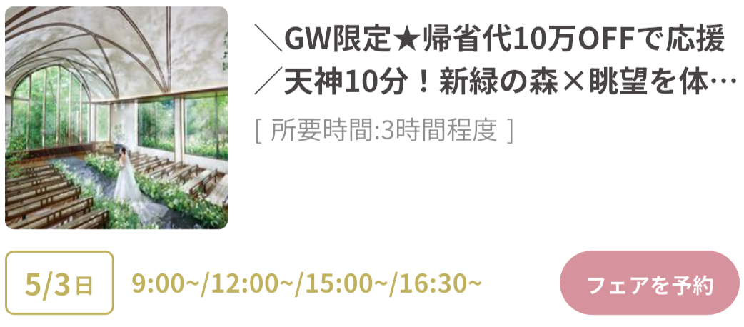 GWは式場探しのチャンス!豪華試食&特典付きスペシャルフェアまとめ(福岡)