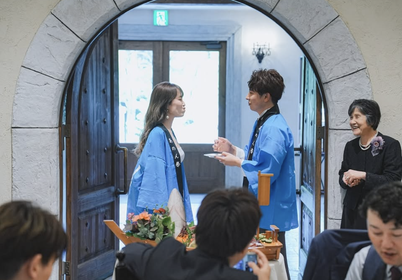 新郎から新婦は「一生食べるものに困らせない」、新婦から新郎は「一生美味しいものを作ってあげる」