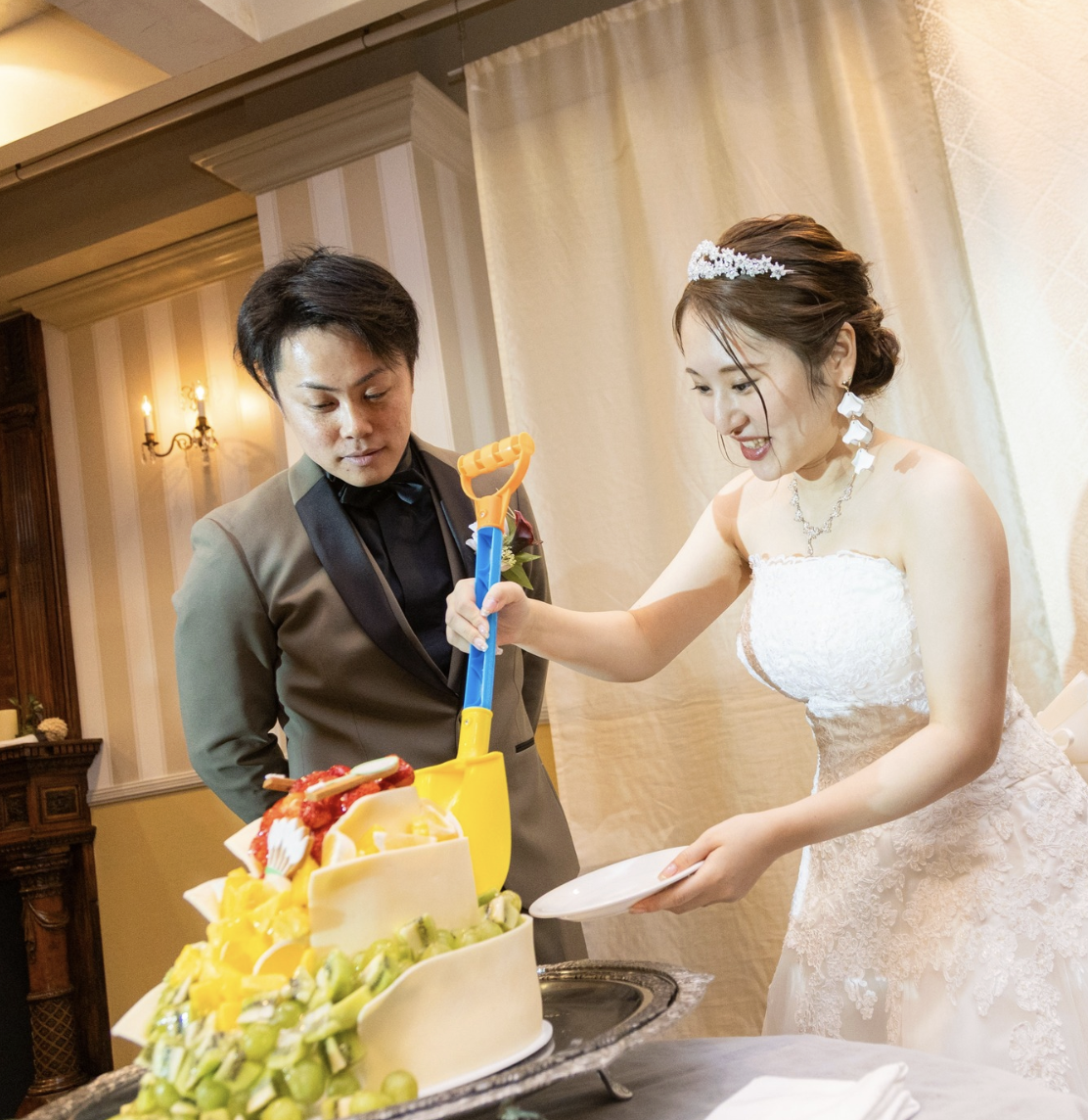 その代わりに、デザートタイムに新郎新婦が切り分けてゲストに配ったり