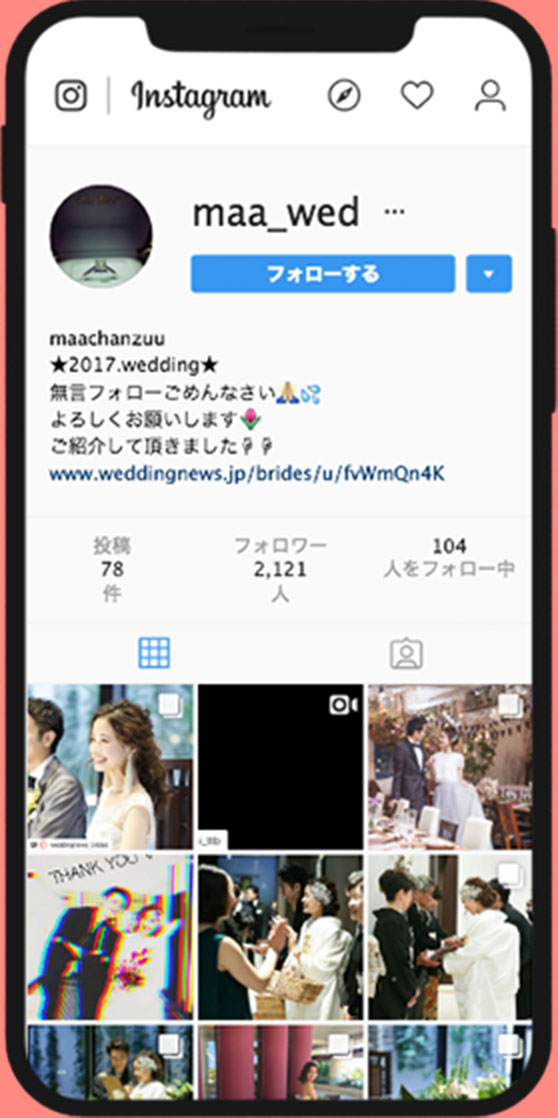 ウェディングニュース(アプリやインスタグラム)でレポを作った花嫁さんが紹介されていて、自分も紹介されたいと思ったから