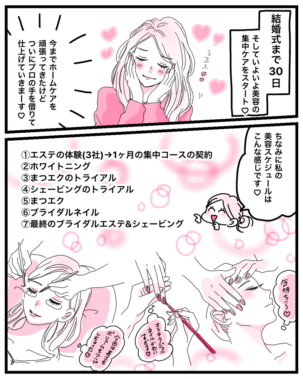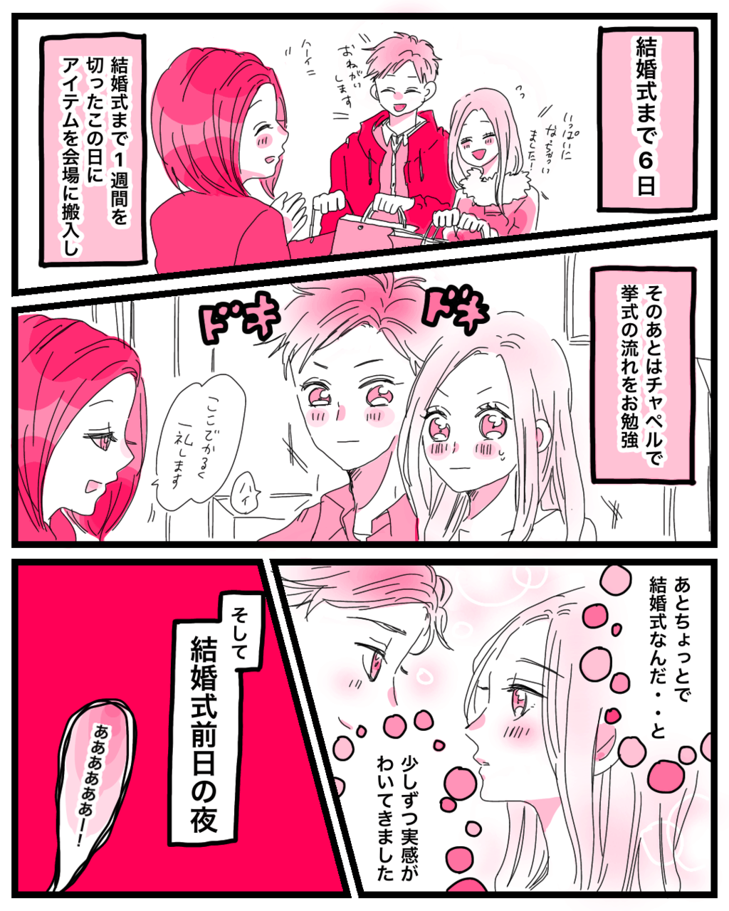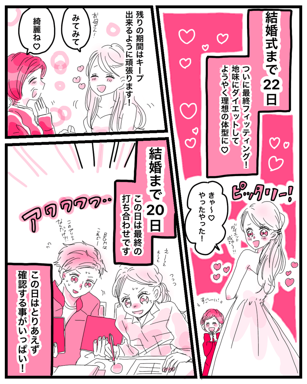 持ち込むものが多かったり、直前の体のメンテナンスで手一杯になったりと、意外に搬入に苦労したという花嫁さんが多いんです。