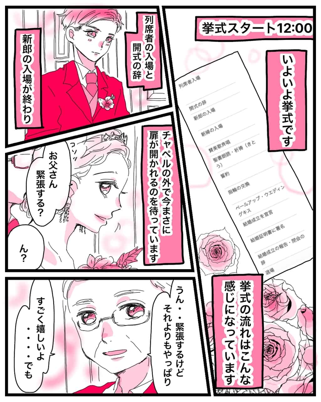 挙式+披露宴にかかる時間は、3時間~3時間半程度かかる場合が多いです。