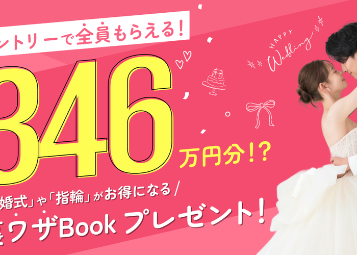 【最大346万円の節約】全員もらえる!結婚準備の裏ワザBook特典プレゼント中♡